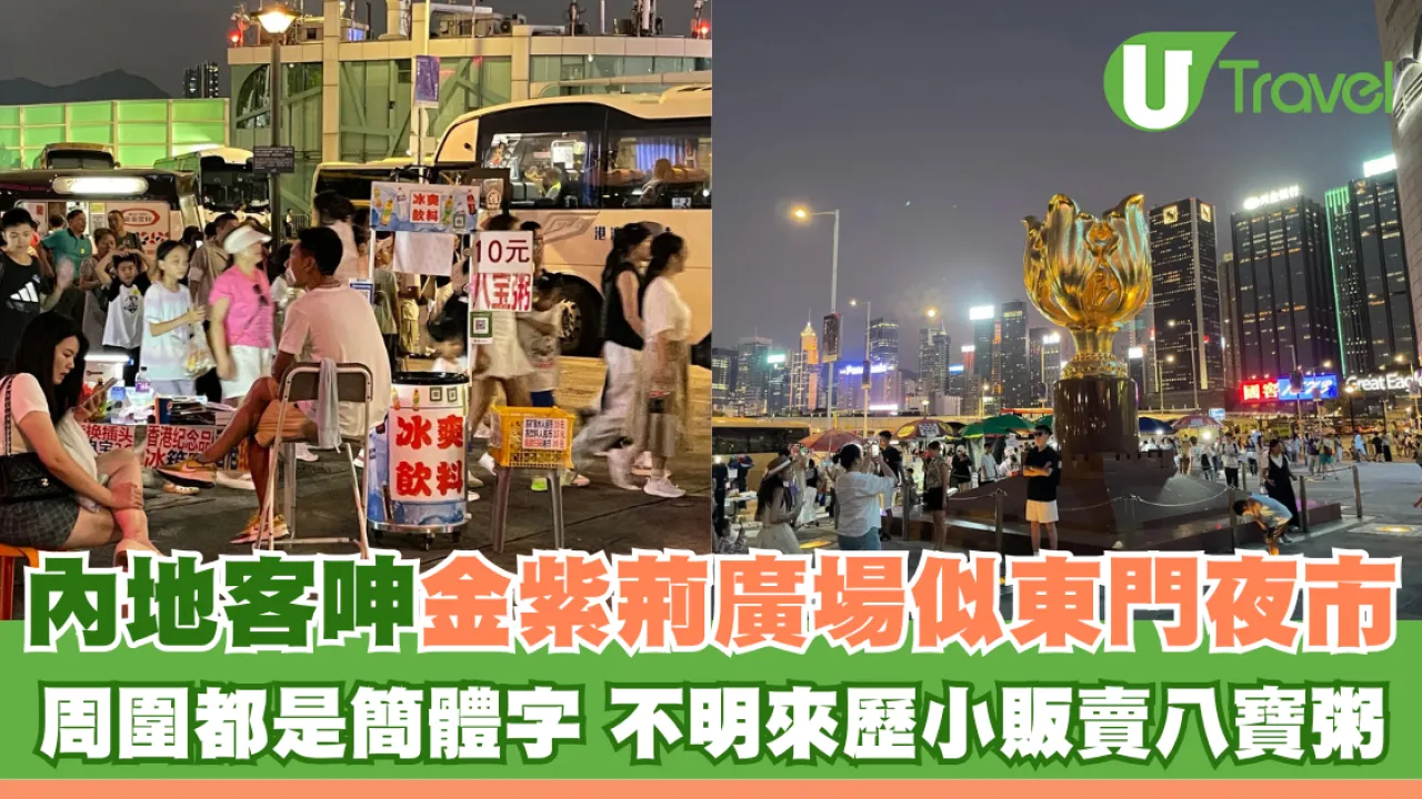 香港地標金紫荊廣場,是許多內地旅行團訪港的必到之處。然而,這個打卡點近期卻在內地社交平台上引發熱議。多位內地遊客發文抱怨,廣場周圍冒出大量露天小販,攤檔上滿是簡體字,售賣著八寶粥、充電器等商品,場景雜亂,讓他們驚訝地形容:「不敢相信眼睛,像內地街邊」。