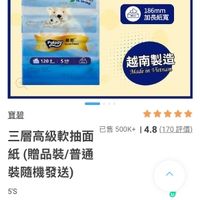| 寶碧 金裝三層卷裝衞生紙10卷裝 | $30 | $1.1 | 4 |