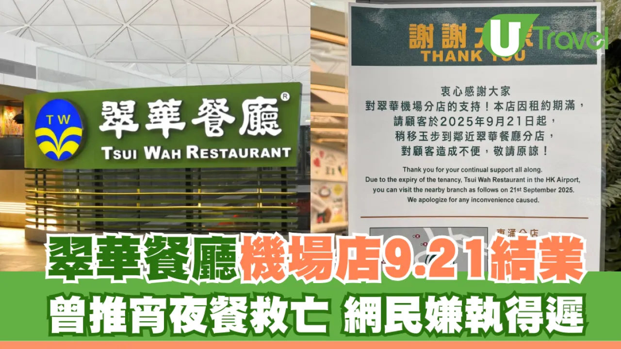 不少港人出發外遊前,都習慣先在機場填飽肚子,但未來可能又少了個選擇。在機場開業12年的翠華餐廳被發現將於9月21日結業,消息在網上引發熱議,不少人對此感到唏噓,但更多人卻對此不感意外,甚至認為「算執得遲」。