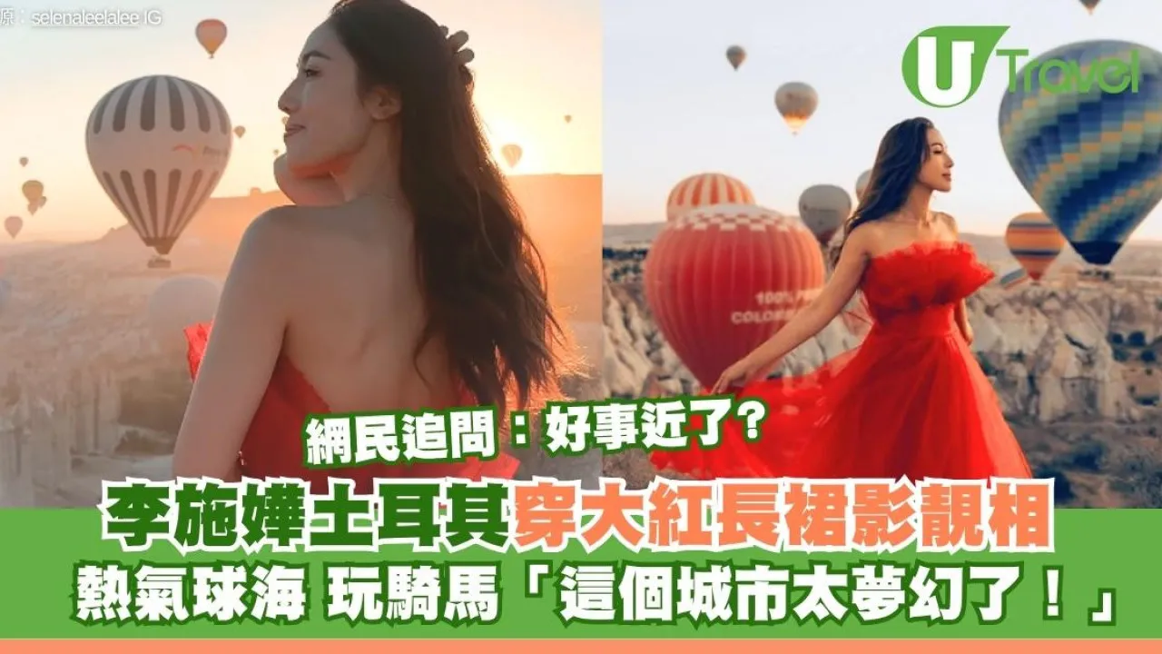在李施嬅最新發布的 IG 貼文中,她身穿一襲鮮紅色露肩長裙,在卡帕多奇亞獨特的岩石景觀和漫天熱氣球的夢幻背景下留影。畫面充滿了電影感,其中一張照片的圖說寫著:「這個土耳其城市太夢幻了」。