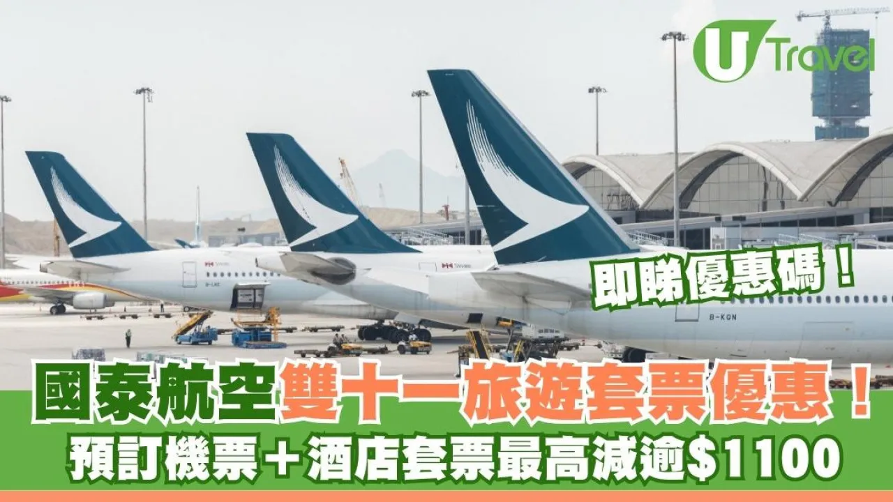 國泰航空為迎接「雙十一」購物節,推出限時旅遊套票優惠。由即日起至11月12日,顧客憑指定優惠編號預訂兩人或以上「機票+酒店」套票,住宿滿四晚或以上可享高達港幣$1,111折扣,其他套票亦有港幣$111優惠,名額有限,先到先得。即睇內文了解更多詳情!