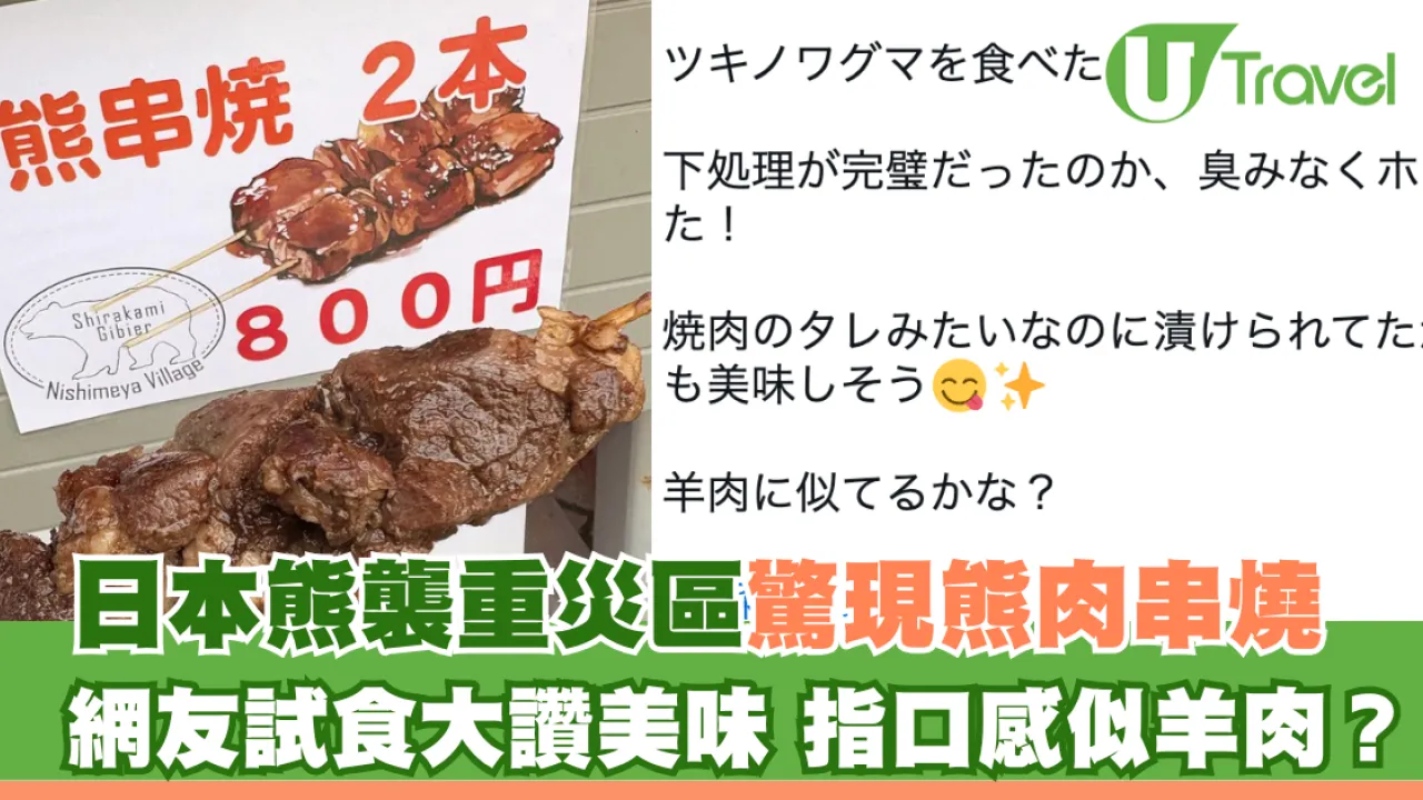 日本今年熊襲事件頻生,至今造成12人死亡,令公眾關注野生熊隻問題。近日,有日本網民在熊襲重災區青森縣的路邊休息站,發現有攤販出售「烤熊肉串」。該網民好奇買下試食,大讚熊肉處理得當,毫無腥臭味,口感被認為與羊肉相似。
