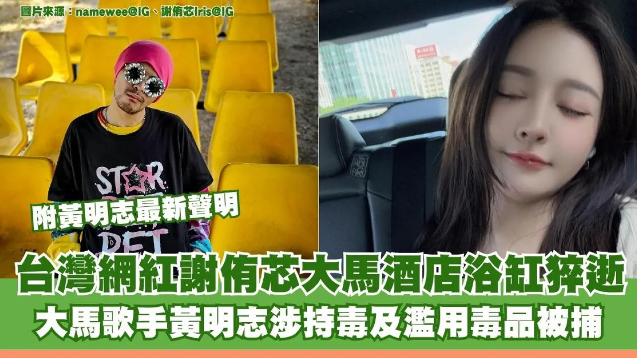 台灣網紅「護理系女神」謝侑芯上月在馬來西亞吉隆坡一間酒店倒斃浴缸,當時在場的馬來西亞歌手黃明志被當地警方證實因藏有搖頭丸被捕及被起訴,初步尿檢更呈多種毒品陽性反應。黃明志否認指控,但死者經紀人質疑其說法與警方矛盾,要求他交代事件真相。
