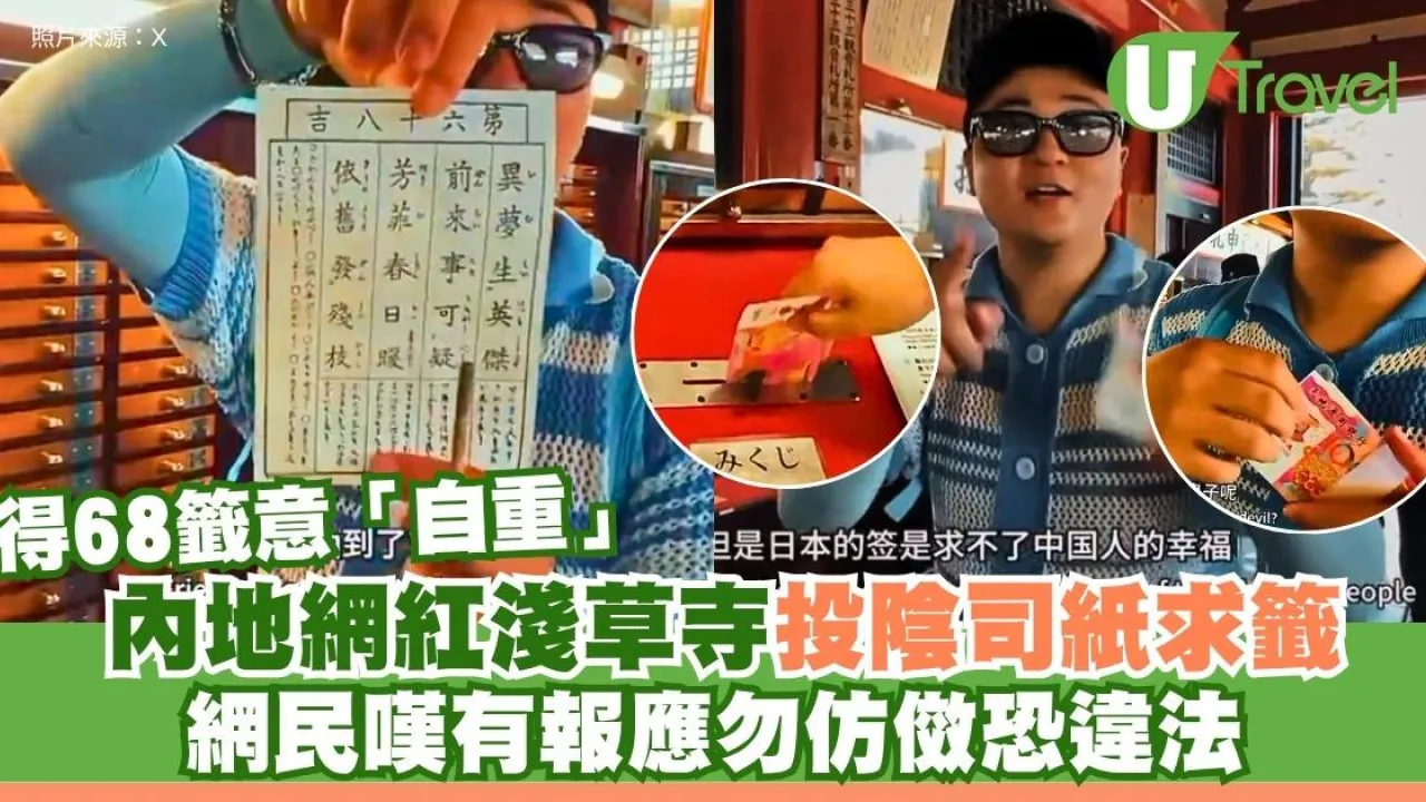 網紅東京淺草寺「投陰司紙求籤」稱「日本的籤求不到中國人幸福」 網民怒斥不敬或違法