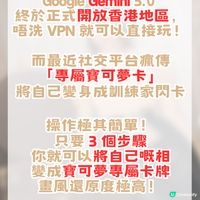 - Gemini AI 在香港要配合VPN才可使用,但若有公司提供的Gemini Workspace方案,那麼即使沒有領取VPN,也可使用Gemini AI。