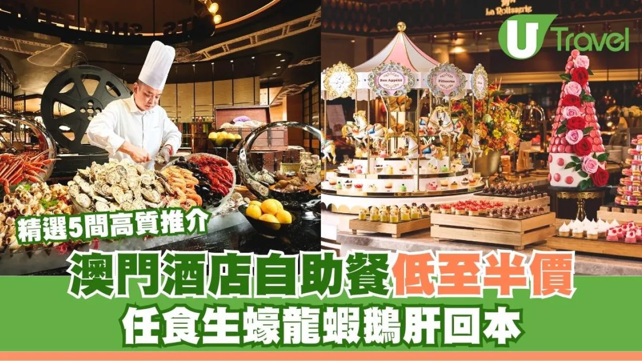 想以平民價錢享受頂級酒店的豪華美食?《U Travel》精選5間澳門高質自助餐,包括新濠影滙、JW 萬豪等,部份時段如平日午餐或早餐可找到低至 5 折的折扣,人均 $200 港幣就能享用豐富的美食體驗,CP值極高!