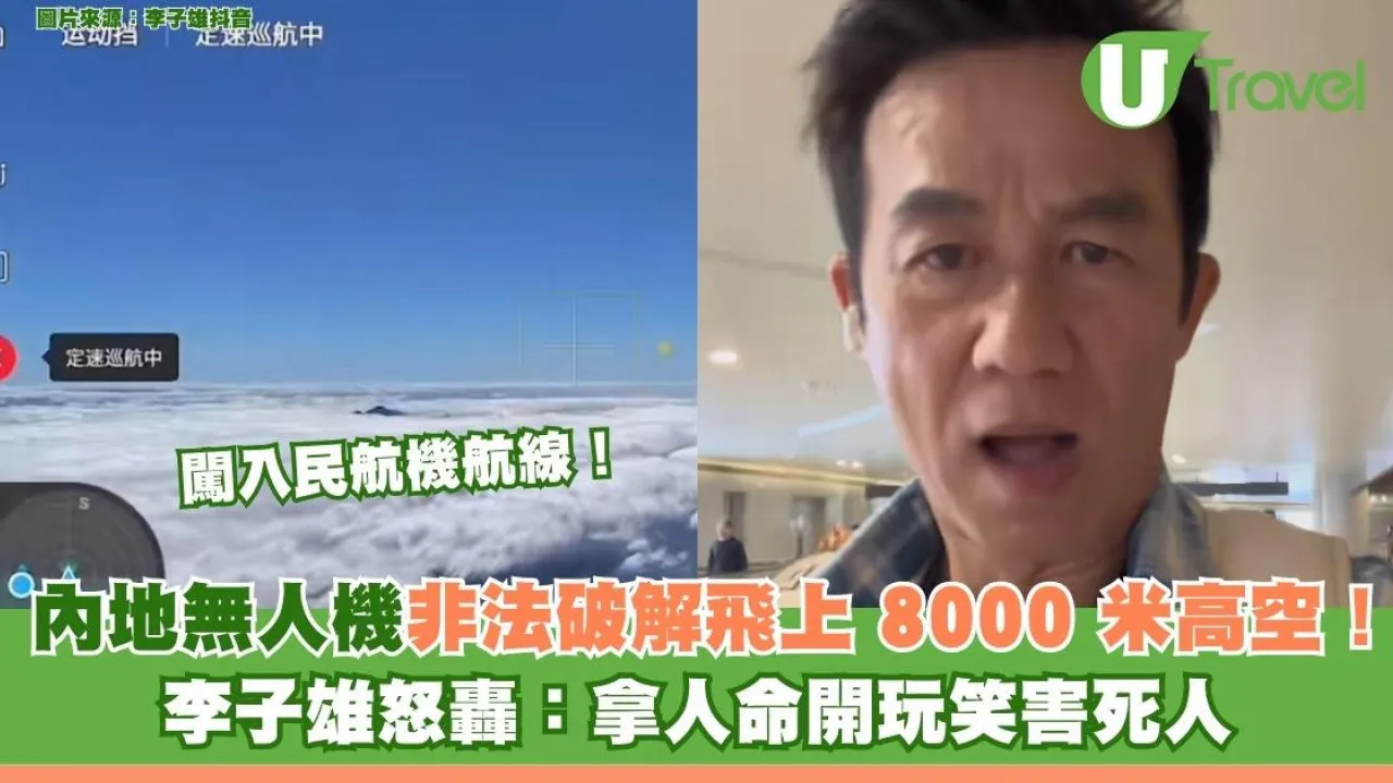 近日,內地網絡流傳多宗無人機嚴重違規飛行(俗稱「黑飛」)事件,引起公眾廣泛關注。香港資深藝人李子雄於12月8日發布影片,嚴厲譴責有關行為罔顧他人安危,直斥涉事者「嚇死我了,無人機和飛機飛得一樣高……這不是飛無人機,這是拿飛機上的人開玩笑」,並在社交平台上標註了廣東及湖南等多地公安部門帳號,要求當局嚴正執法。