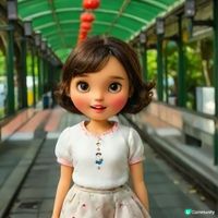 Prompt :(互動與動態) 一隻巨大的真人食指,正輕輕揑著公仔肉嘟嘟的左臉頰,臉頰部位因為手指的壓力而產生真實的凹陷變形。 公仔站穩在手掌上不動,只有頭部郁動,表情似卡通自然地回應手指揑臉珠的可愛撒嬌感覺。」