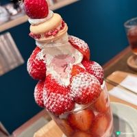 位於北九州市的小倉南區,這是一間被無數乾花簇擁的夢幻 Cafe,牆面布滿花束,隨手一拍都是打卡美照。店內主打透明立方體容器盛載的「Hako-Parfait」,能清晰看見水果與忌廉交織的九層結構。特別推介選用兩整盒あまおう草莓製作的「花束聖代」,自家製忌廉甜而不膩,草莓果香撲鼻,是視覺與味覺的雙重饗宴,適合熱愛花卉與精緻甜點的朋友。
