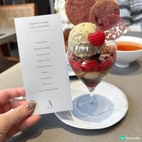 來自東京的頂級甜點品牌進駐福岡,帶來極致奢華的聖代體驗。其草莓聖代結合了小荳蔻冰沙、洋甘菊蜂蜜果凍與榛果焦糖布丁,複雜的食材組合卻能展現出清晰的層次感。店內更強調「Pairing」概念,推薦搭配帶有煙燻香氣的薰衣草京番茶,讓甜點的風味輪廓更加鮮明。這裡不只是吃甜點,更像是一場關於溫度、香氣與味覺對比的味覺實驗室。