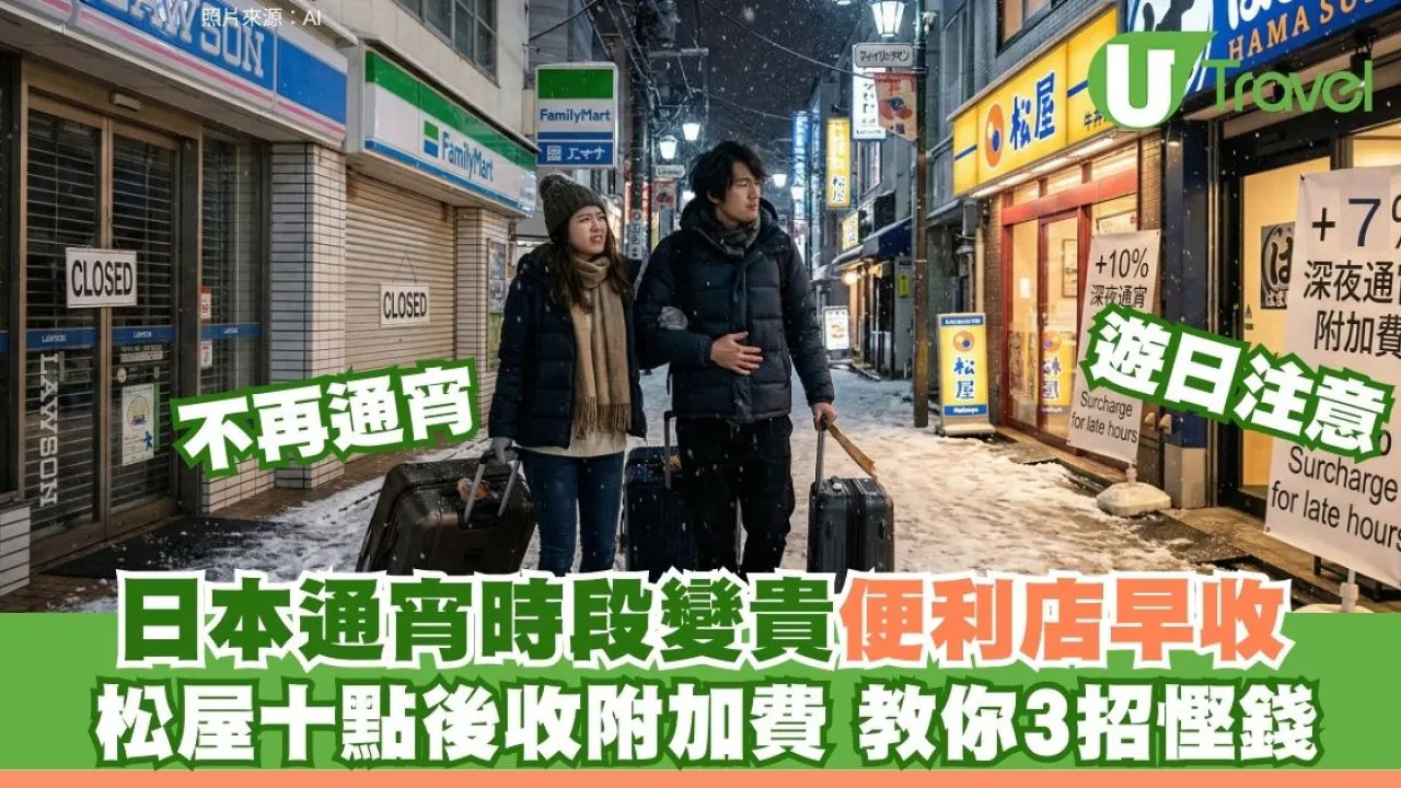 準備遊日的港人注意!日本因人手短缺,不僅逾6,400間便利店取消24小時營業,多間連鎖食肆如HAMA壽司、松屋等亦於晚上10時後加收7%至10%「深夜服務費」。旅客未來安排宵夜及晚間行程時,務必留意營業時間及額外收費,以免大失預算。