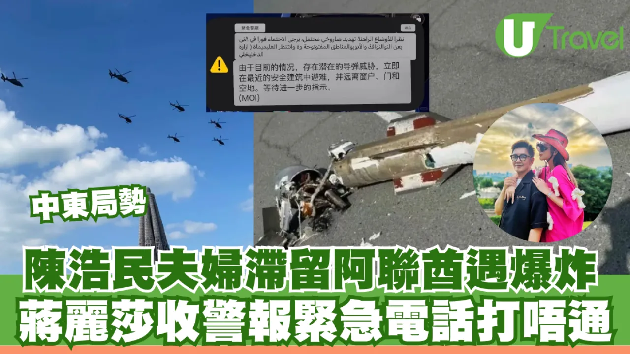 中東局勢持續緊張,阿聯酋多地近日遭遇導彈及無人機襲擊。受戰火波及,中東多國緊急關閉領空,包括杜拜在內的三個主要航空樞紐機場被迫停止營運,估計超過2萬名旅客滯留當地。藝人陳浩民與妻子蔣麗莎一家現身在阿聯酋,昨日在社交網發文曬出當地官方的緊急警報截圖,又言這是她人生中第二次收到轟炸警報,並感嘆身處戰亂地區才深切體會到和平的可貴。