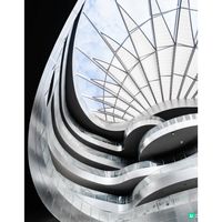 2026年初正式開放的超前衛建築,因其獨特的樂器流線造型被網民親切稱為「巨型鞋墊」。建築內部找不到直角,展現出極致的弧線美。擁有5000平方米的「城市客廳」遮陽頂棚,與後方的花海公園相連,是藝術展覽與戶外休閒完美結合的典範。