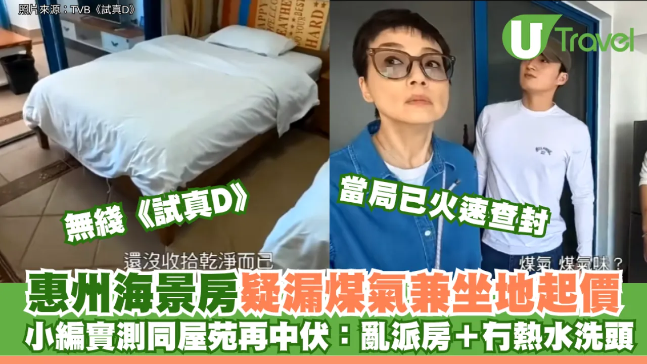 TVB《試真D》早前踢爆惠州滿分海景公寓漏煤氣兼坐地起價,引發熱議。小編四月初亦曾入住同一屋苑,雖房間無江美儀所指的煤氣味,卻驚歷床單染污、沖涼中途無熱水,甚至未退房已被安排新客入住的離譜遭遇!港人北上訂房切忌盲信網上圖片。