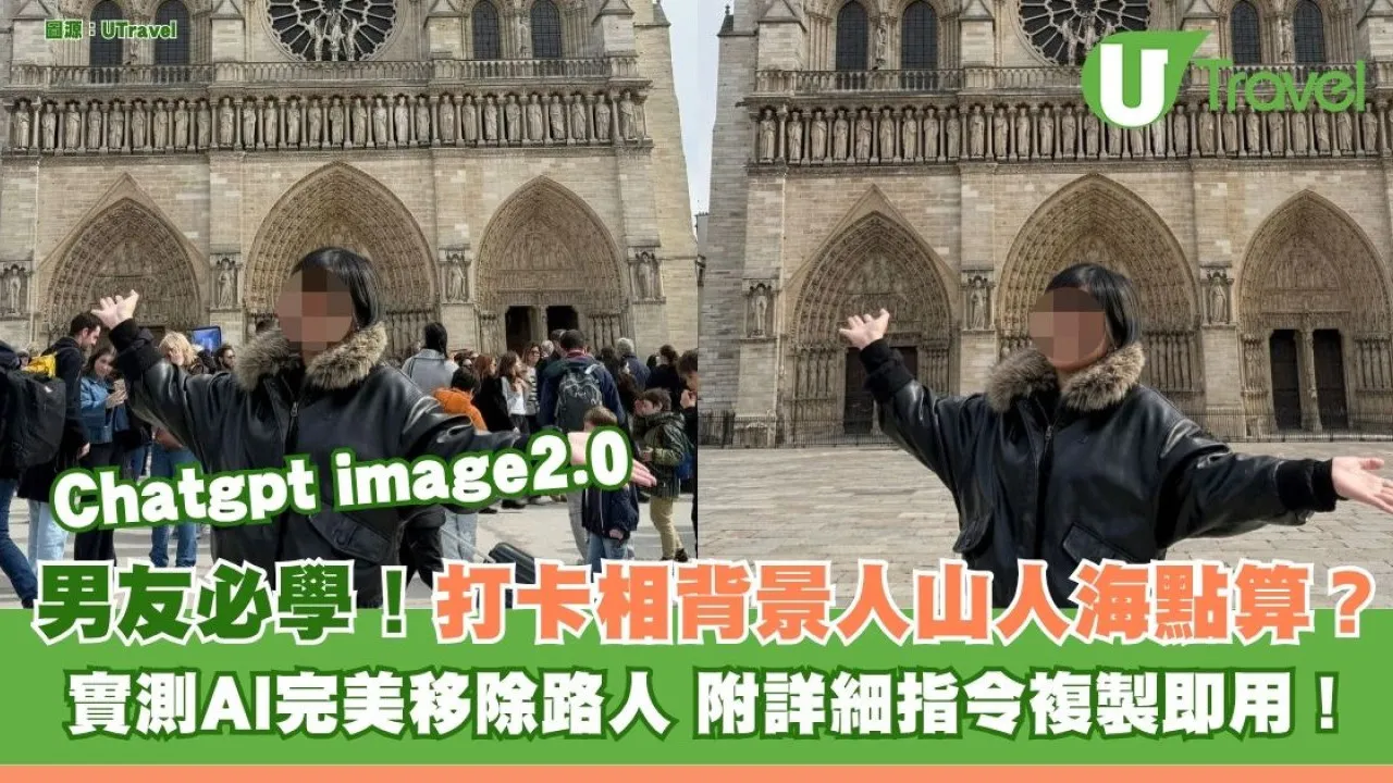 對於不少負責為伴侶拍照的「攝影師」而言,最令人頭痛的莫過於在熱門景點遇上避無可避的人潮。隨著 ChatGPT Image 2.0 的推出,以往需要專業修圖技術才能處理的「人山人海」背景,現在只需透過對話及簡單選取即可輕鬆修補。