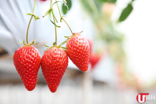 園內採用「高設栽培」而非地上種植,空間更好用,BB 車都行到。品種方面主要種章姬、紅面頰及栃乙女,其中栃乙女是日本生產量最高,出名色香俱備又 juicy!