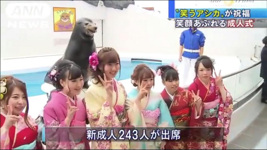 今日是日本的成人之日,水族館原來自 14 年前起就免費招待新成人(滿 20 歲)入場。海獅明星會跟新成人們合照,今年就有 243 人出席活動啦,認真辛苦幾位海獅明星了。3 隻可愛海獅明星笑容都唔一樣,其實會唔會係人扮?