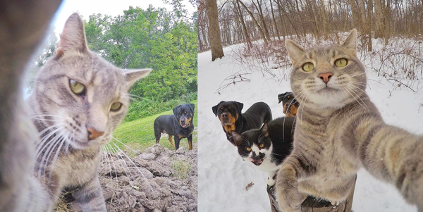 ▲虎斑貓 Manny 嘅自拍神器,其實係一部 GoPro!佢主人 Yore 話,每次去野外放貓放狗想影啲相拍啲片,Manny 就會八八卦卦咁行埋去部 GoPro 度撩撩撩,造成呢個自拍錯覺!