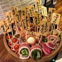 博多串燒專門店於澀谷的分店,有黑豚、大山鳥、黑毛和牛及野菜肉卷串等,喜愛串燒的朋友一定要來這間串燒天堂!還有雜錦串燒「一串入魂」1,780yen有8款鹽串燒。