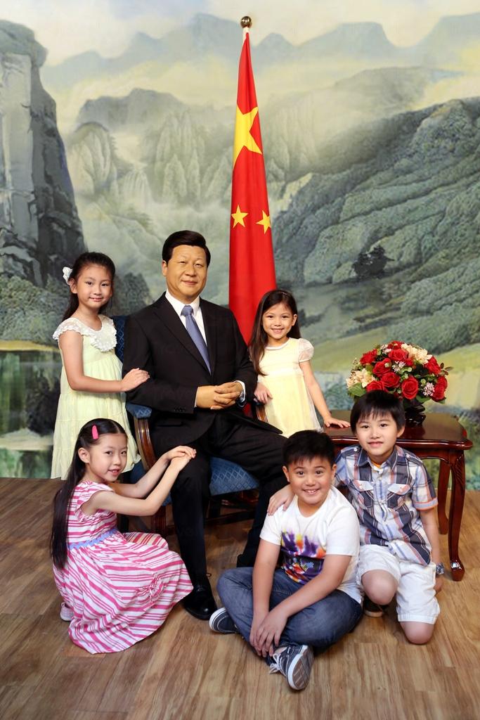 現在到香港杜莎夫人蠟像館,可與國家主席習近平近距離接觸!掛著招牌笑容的習近平身穿孖襟西裝,神態自若坐在會議室內,雙手互扣,略微向左望著賓客。 為了提高逼真度,雕塑師花了半年時間鑽研無數相關照片和錄影片段,成功造出與習近平真人一模一樣的蠟像。蠟像將在「風雲人物」展區永久展出,令館內現有的中國及國際領袖陣容更強盛。 香港杜莎夫人蠟像館總經理麥婉嫻表示:「能夠獲得習近平主席進駐本館,我們深感榮幸。根據館內定期向賓客進行的意見調查,不少賓客均希望能在本館內見到習近平主席。」現在大家都能夠近距離接觸這位中國國家主席,親身體驗與政壇領袖舉行會議的氣氛。