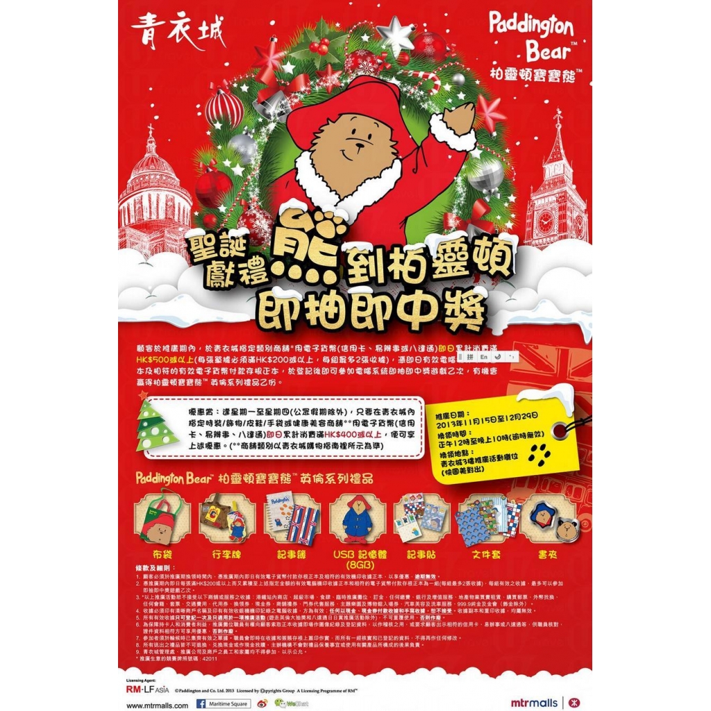 網址 相關情報: 柏靈頓寶寶熊 現身青衣城 其他商場情報一覽>>按此 其他著數情報一覽>>按此