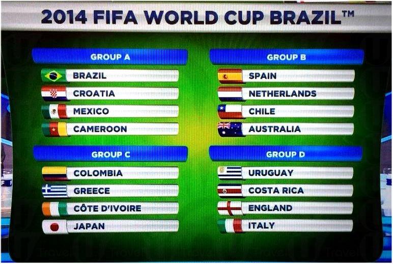 2014 巴西世界杯 32 強抽籤完成,揭幕戰將由 A組巴西對克羅地亞於 2014 年 6 月12 日晚展開,至於另外較受注目的三組有「死亡之組」D組(英格蘭、意大利、烏拉圭及哥斯達尼加爭出線);B 組(西班牙與荷蘭提早上演去屆世界杯冠軍戰翻版);G組(德國、葡萄牙、加納、美國勢均力敵)。 另外,今屆世界杯採用新比賽足球「brazuca」。「brazuca」在巴西語有「巴西人」意思,球面採用的色彩和緞帶狀設計亦充滿森巴魅力。「brazuca」較以往比賽用球更輕更穩定易控,不少球員試用後的評語都是頗正面的,且看它能否為今屆賽事帶來更多精彩入球了! 【2014 巴西世界杯賽程】 6月13日 (五) 4am 巴西 vs 克羅地亞 (A組) ★ 6月14日 (六) 12am 墨西哥 vs 喀麥隆 (A組) 3am 西班牙 vs 荷蘭 (B組) ★ 6am 智利 vs 澳洲 (B組) 6月15日 (日) 12am 哥倫比亞 vs 希臘 (C組) 3am 烏拉圭 vs 哥斯達黎加 (D組) 6am 英格蘭 vs 意大利 (D組) ★ 9am 科特迪瓦 vs 日本 (C組) 6月16日 (一) 12am 瑞士 vs 厄瓜多爾 (E組) 3am 法國 vs 洪都拉斯 (E組) 6am 阿根廷 vs 波斯尼亞 (F組) 6月17日 (二) 12am 德國 vs 葡萄牙 (G組) ★ 3am 伊朗 vs 尼日利亞 (F組) 6am 加納 vs 美國 (G組) 6月18日 (三) 12am 比利時 vs 阿爾及利亞 (H組) 3am 巴西 vs 墨西哥 (A組) 6am 俄羅斯 vs 南韓 (H組) 6月19日 (四) 12am 澳洲 vs 荷蘭 (B組) 3am 西班牙 vs 智利 (B組) 6am 喀麥隆 vs 克羅地亞 (A組) 6月20日 (五) 12am 哥倫比亞 vs 科特迪瓦 (C組) 3am 烏拉圭 vs 英格蘭 (D組) ★ 6am 日本 vs 希臘 (C組) 6月21日 (六) 12am 意大利 vs 哥斯達黎加 (D組) 3am 瑞士 vs 法國 (E組) 6am 洪都拉斯 vs 厄瓜多爾 (E組) 6月22日 (日) 12am 阿根廷 vs 伊朗 (F組) 3am 德國 vs 加納 (G組) 6am 尼日利亞 vs 波斯尼亞 (F組) 6月23日 (一) 12am 比利時 vs 俄羅斯 (H組) 3am 南韓 vs 阿爾及利亞 (H組) 6am 美國 vs 葡萄牙 (G組) 6月24日 (二) 12am 澳洲 vs 西班牙 (B組) 12am 荷蘭 vs 智利 (B組) 4am 克羅地亞 vs 墨西哥(A組) 4am 喀麥隆 vs 巴西 (A組) 6月25日 (三) 12am 意大利 vs 烏拉圭 (D組) ★ 12am 哥斯達黎加 vs 英格蘭 (D組) 4am 日本 vs 哥倫比亞 (C組) 4am 希臘 vs 科特迪瓦 (C組) 6月26日 (四) 12am 尼日利亞 vs 阿根廷 (F組) 12am 波斯斯亞 vs 伊朗 (F組) 4am 洪都拉斯 vs 瑞士 (E組) 4am 厄瓜多爾 vs 法國 (E組) 6月27日 (五) 12am 美國 vs 德國 (G組) 12am 葡萄牙 vs 加納 (G組) 4am 南韓 vs 比利時 (H組) 4am 阿爾及利亞 vs 俄羅斯 (H組) 淘汰賽: 【十六強】 6月29日 (日) 12am A組首名 vs B組次名 4am C組首名 vs D組次名 6月30日 (一) 12am B組首名 vs A組次名 4am D組首名 vs C組次名 7月1日 (二) 12am E組首名 vs F組次名 4am G組首名 vs H組次名 7月2日 (三) 12am F組首名 vs E組次名 4am H組首名 vs G組次名 【八強】 7月5日 (六) 頭場 12am 尾場 4am 7月6日 (日) 頭場 12am 尾場 4am 【四強】 7月9日 (三) 4am 7月10日 (四) 4am 【季軍戰】 7月13日 (日) 4am 【決賽】 7月14日 (一) 3am