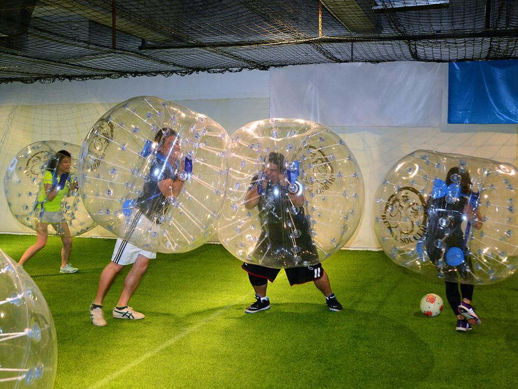 每次世界杯都會帶起一股足球狂熱,不少人在觀賽之餘也想落場踢球。 「大球」踢小球 在外國流行多年的泡泡足球(Bubble Soccer)最近由港人引入香港,球員穿上充氣巨型塑膠泡泡,「大球」踢小球,運動之餘還可以帶來歡樂。 這項運動與傳統的足球同樣需要兩組作戰,進球多者勝,不同處在於泡泡足球沒有公認的比賽規則,時間和人數都由參賽者自行決定,過程可盡情撞開對手,被撞開的球員會像足球一樣滾來滾去,甚至360度旋轉,賽場上一片東倒西歪,重點是「撞人為樂」。 將泡泡足球一手引入香港的是青年創業者姚志斌,他今年初透過工作假期計劃到澳洲,初次接觸活動就已着迷。姚志斌認為,香港人生活太認真,約上一眾好友參與泡泡足球,做運動時也能夠有多點歡笑,是放鬆的好方式。 泡泡足球參加者撞來撞去,其實不易受傷,參加者雙手穿過肩帶後,臀部以上部分被泡泡包圍,大部分撞擊力會被吸收,被撞倒後只要轉動泡泡直到面部朝下,就可以用膝蓋平衡身體站起來。 邊到有得玩? 地點:Bubble Soccer Hong Kong 荃灣海盛路3號TML Tower 25樓 D6 (可進行3對3玩家的形式) 收費:視乎參加人數、場地及活動時間而定
