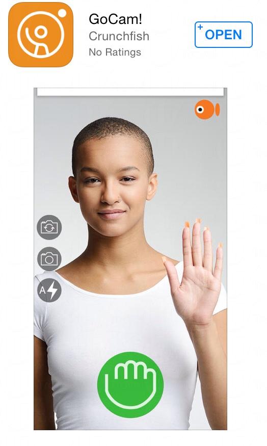 蘋果最出推出自拍APP「GoCam」,無須噤制,打手勢就得!以後唔駛將手同手機扭來扭去觸按熒幕或按鍵(你懂的)。首先將手掌伸直,與熒幕下方的手掌鍵對齊(水平距離不能超過30cm),然後合起手指握成拳頭5秒,程式便會自動倒數,拍下你的玉照,十分方便!「GoCam」即日起可於App Store 免費下載。