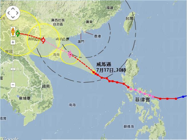 2014/7/17 4:15pm 消息: 天文台在下午4時15分發出三號強風信號。 2014/7/17 11am 消息: 今日上午11時,天文台指颱風威馬遜集結在香港之東南偏南約650公里,預料向西北移動,時速約22公里,大致移向廣東西部至海南島一帶。可能影響本港。天文台會在下午考慮否需要改發三號強風信號。 2014/7/16 11:45pm 消息: 「威馬遜」今晚進入本港八百公里內範圍,天文台在晚上 11 時 40 分發出一號戒備信號。 2014/7/16 10am 消息: 天文台在今日上午8時宣佈強颱風「威馬遜」已減弱為颱風。在上午10時,威馬遜集結於馬尼拉以西約80公里,預料向西北偏西移動 ,時速約25公里,橫過菲律賓中部,並進入南海。預料明早「威馬遜」會進入香港八百公里內範圍,估計中心最高風力為每小時145公里,屆時「威馬遜」或會再度增強,但確實消息還要留待天文台再公佈。未來兩三日天氣預測: 天氣酷熱,風勢頗大和間中有大雨。