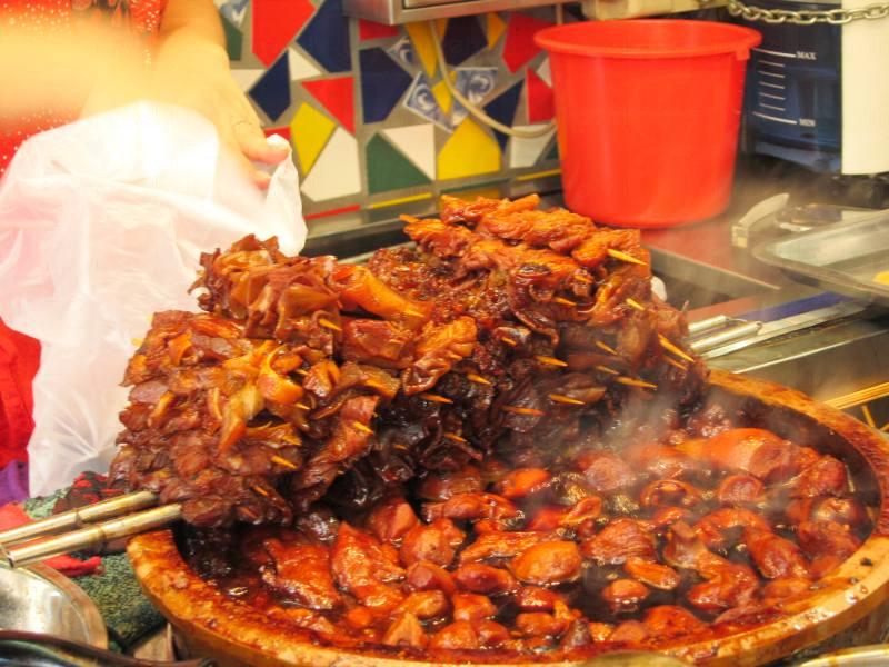 位於三盞燈圓形地街市熟食檔的馮記三盞燈豬腳姜,有 18 年歷史,除了傳統的薑醋豬腳和雞蛋外,也有提供薑醋豬皮、豬腸、豬耳等食物,種類比一般薑醋店來得多。豬皮、豬腸、豬耳十分入味,醒胃非常,盛惠每串澳門幣 5 元。薑醋豬腳方面,豬腳膠質多,口感十足, 14 澳門圓一隻,如果連雞蛋則要 20 元澳門幣。馮記不設堂食,但有微波爐盒供外賣,食客可多多留意。