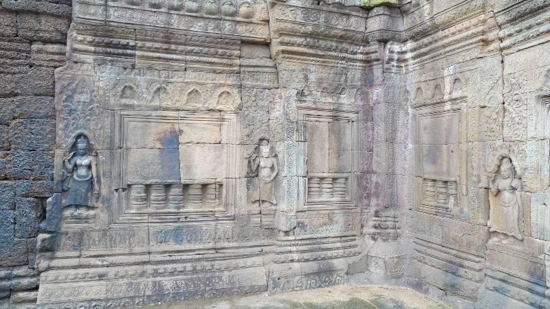 Wat Nokor 廟身由石頭及紅工建成,莊嚴肅靜。廟外面則建有一面以石柱作支撐的圍牆,內裡則刻有不同形狀的雕刻,圍牆出面又放置各式人形石像。值得一提的是,由於磅湛市市中心距離 Wat Nokor 只有數公里,遊客可踏單車前往遊覽,一邊欣賞湄公河景色。