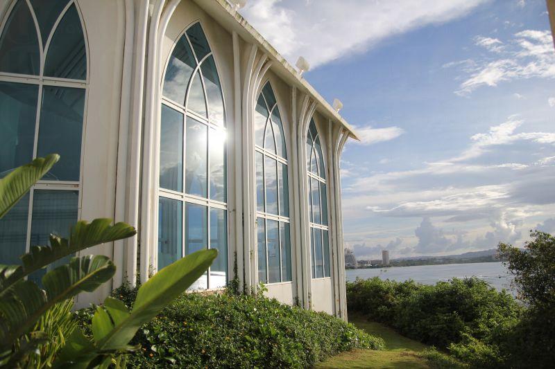 Cystal(水晶教堂)是關島最好的教堂。很多人來這結婚渡蜜月,教堂內白色鋼琴,白色橫椅,以及玻璃相互映襯故得名水晶教堂。這個教堂每個角落的窗戶都可以看到碧藍海景可以說是關島一大亮點。