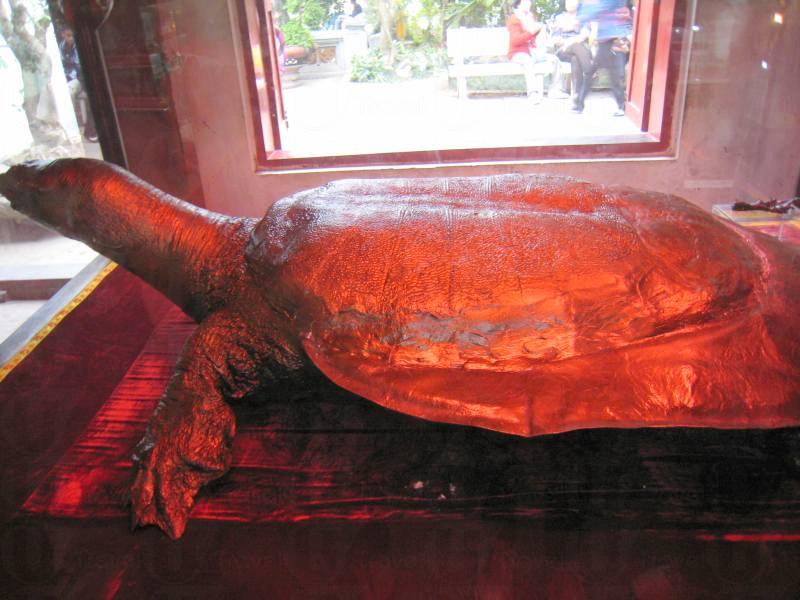 廟內除了可以誠心參拜神祇外,也可以看到一隻巨龜銅像:據說十五世紀初開國重帝黎太祖與明朝軍隊打仗時,受到上天感召於湖中撈起一把刻有「順天」二字的寶劍,而之後黎太祖便節節勝利。輾轉之下,黎太祖將寶劍還予湖中的一隻巨龜,於是後人便認為巨龜是神明化身,湖更被命名為「還劍湖」。
