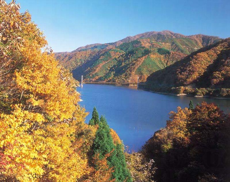 位於九頭龍川上游的九頭龍湖是一個因建造石壩水庫而成的人工湖,當中的面積據說可媲美青森縣的十和田湖。湖中最有特色的可算是建在湖上的「夢之橋」,以瀨戶大橋為藍本而設計出來的吊橋,在橋上可觀賞到湖光山色,醉人美景。