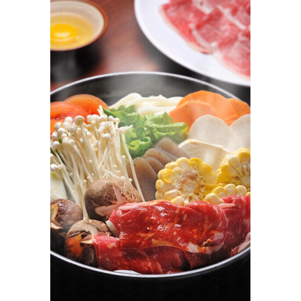此外,食客可將牛肉與特製壽喜燒醬汁一起烹煮,煮至醬汁味道滲入牛肉,再沾生雞蛋進食。MOU MOU CLUB 表示壽喜燒要避免將已煮熟的牛肉及野菜等泡在醬汁中持續地加熱,因而使醬汁變乾,應吃光鍋內食物後才加入新食材。