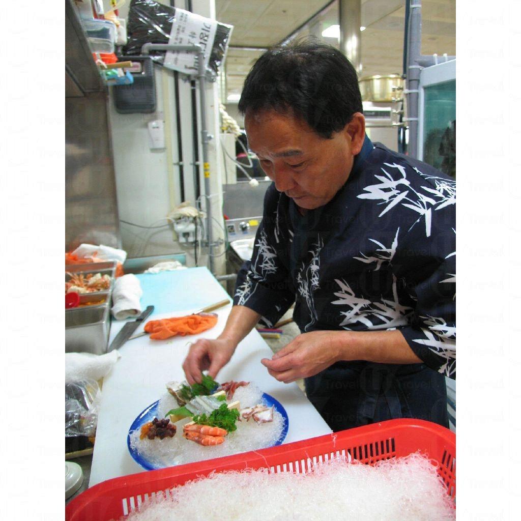 札嘎其市場除了值得觀看外,大家記得親嘗二樓食肆的佳餚。二樓有十多間餐廳,分為韓式及日式兩類,座位採用地道的韓式座席設計。點菜方式跟香港的海鮮酒家無異,客人可在餐廳內從餐牌上選擇菜式,亦可到攤販購買海鮮,然後邀請餐廳廚師為你烹煮,據知此做法較為便宜,每位不用花 3,000 韓圜。韓國的魚類幾乎以白肉魚為主,味道較淡,推介的魚類是鱲魚,可選擇配上燒酌,膩味全消;另外,當地人非常熱愛把活生生的八爪魚丟進口裏,說喜歡被魚吸嘴吸着嘴巴的感覺,大家可以一試。