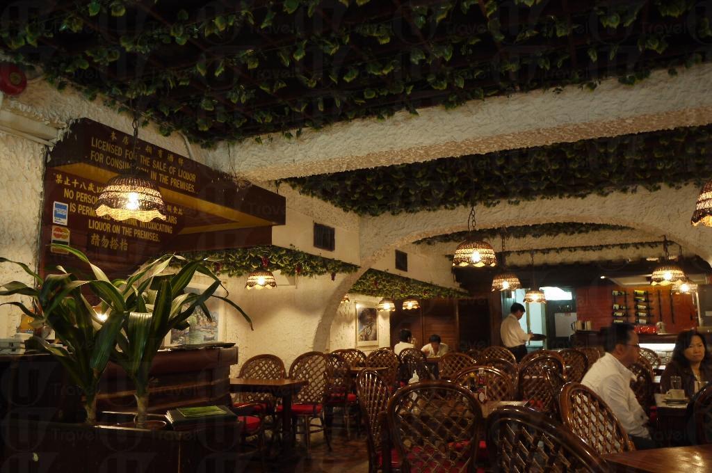 雅士餐廳其中一個最吸引人之處是其歐陸式裝修,屋頂上的白色圓拱形柱樑,配上古典木檯及泛起黃燈的藤製燈罩,與牆上掛起的歐陸風情畫相映成趣。