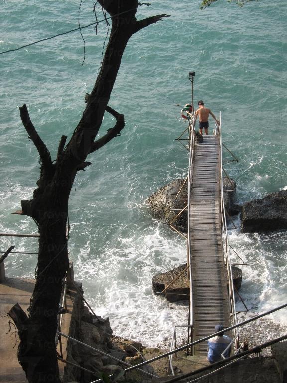 由堅尼地城依海邊起行,行 20 分鐘到達廢料轉運站,沿著上斜路就會發現有兩條下山樓梯,皆可通往泳棚。