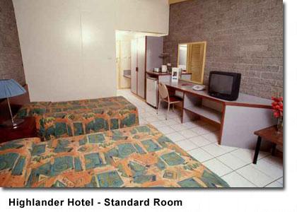 Highlander Hotel 位於巴布亞新畿內亞第三大城巿芒特希根(Mount Hagen),鄰近市中心,交通便利。酒店四周都有花園,房間時尚精緻,每一間房間都設有冰箱、長途電話、有線電視、製茶和咖啡設施。酒店更提供 24 小時外匯兌換服務。此外,酒店還有兩家餐廳、室外溫水游泳池和會議室供旅客使用。