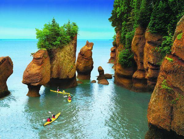 芬迪灣屬加拿大新不倫瑞克(New Brunswick)與新斯科細亞省(Nova Scotia)間的北美東海岸,而其中一個小灣 ── 米納斯灣(Minas Basin)的潮汐可達 21 米,約有 4 層樓房之高。另外,聞說每天約有 1000 多億噸海水出入芬迪灣,此水量原來已超過全球所有淡水河的總水量,難怪能成就如斯宏偉潮汐!