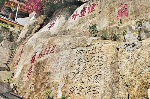 另外,創寺者妙蓮和尚曾於「八國聯軍」時期曾獻數萬銀元予滿清政府,故有出自光緒皇帝御筆的「大雄寶殿」匾額、由慈禧太后所題「海天佛地」匾額。有趣的是,寺內放生池附近亦有清末民初名士的摩崖石刻,包括康有為、同盟會會員所題之字呢。
