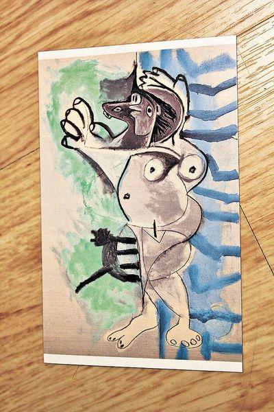 眾所周知,畢加索的作品愛以多角度及以幾何圖案呈現對象的不同面貌,並多數為赤裸女性。其中一幅靠在大門的《Head on a Beige Background》,畫像三尖八角,原來是他第一任妻子;另外一幅則是《Reclining Nude with Cat》就是貓與裸女,以此系列有好幾張,也有該女士多角度的轉身,但貓兒在其身上遊走的這裏只有一張,有指此貓乃畢氏的自我寫照。