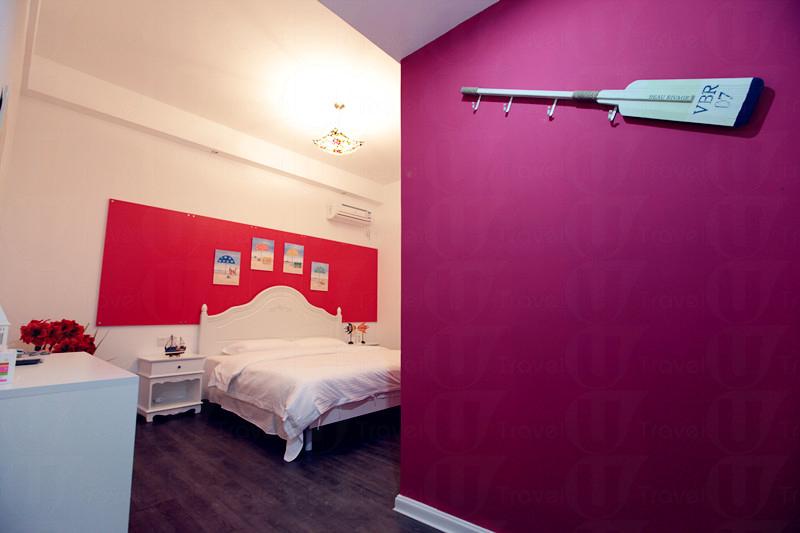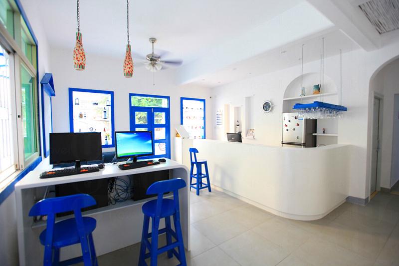 楊老闆參考了地中海的建築設計,白色的牆身配藍色的傢俱,清新典雅。房間雖然不算大,但是 wifi、空調、電視、毛巾、牙刷樣樣齊。白色床單配淨色的牆身,簡單舒服而不感簡陋。