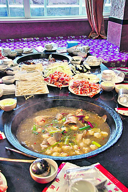 鐵鍋燉魚餐每位人民幣 49 元,飲品、蔬菜、牛羊肉等加菜類另計。