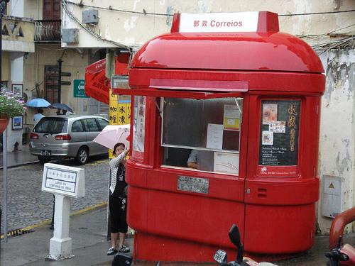 大三巴的小郵局,只能容納一位職員。遊客在這兒可以購買澳門郵票、明信片等,如果想購買或參觀更多歷年來澳門的郵票及小全張,不妨前往位於議事亭前地的郵政總局,喜愛集郵的遊人不容錯過。