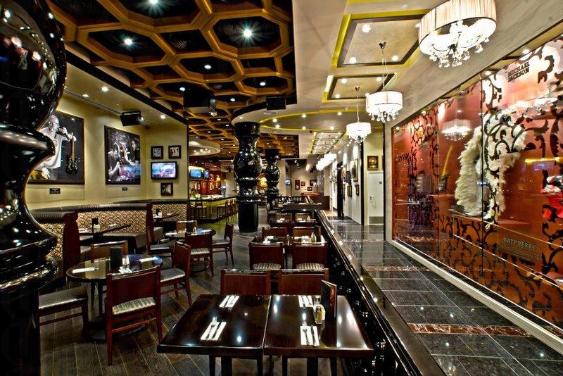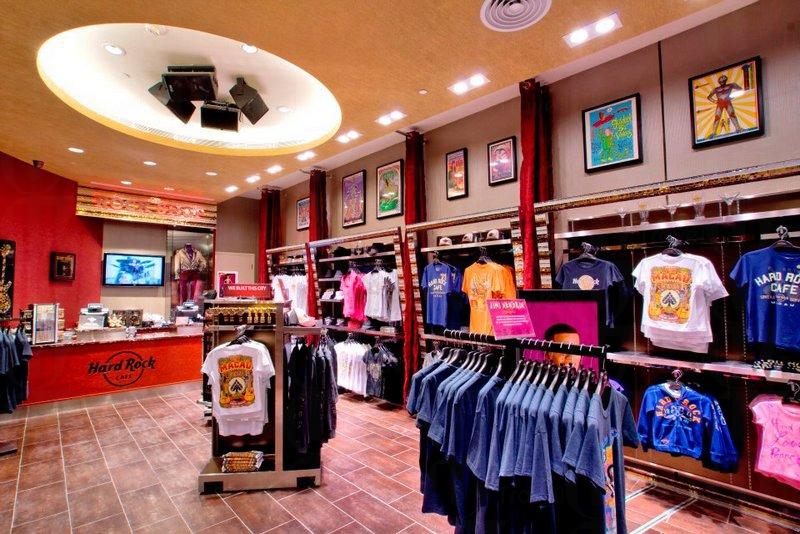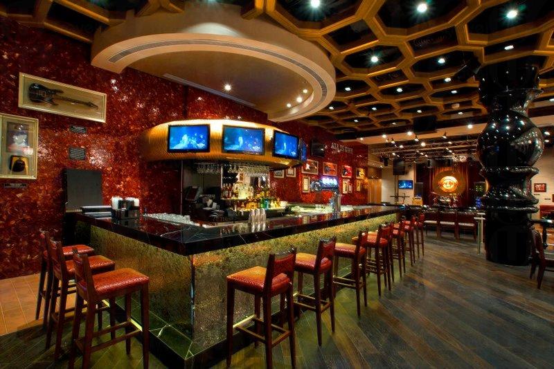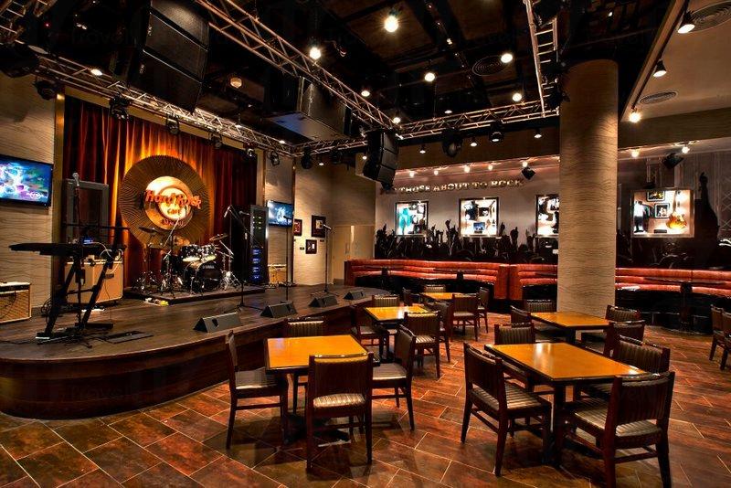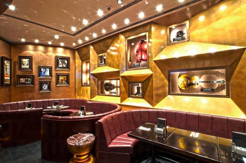 Hard Rock Cafe 主要以紅色為主調,且放了有很多不同巨星的相片和結他的擺設。場內也播放著輕快的歌曲,令人感覺放鬆。每晚約8點後更會有 Live Band 即場表演音樂,氣氛熱鬧!表演的舞台設備齊全,包括嵌壁式電視熒光幕、特別訂製之鱷魚皮紋擴音器及24 K 金的鼓等,誠意十足!