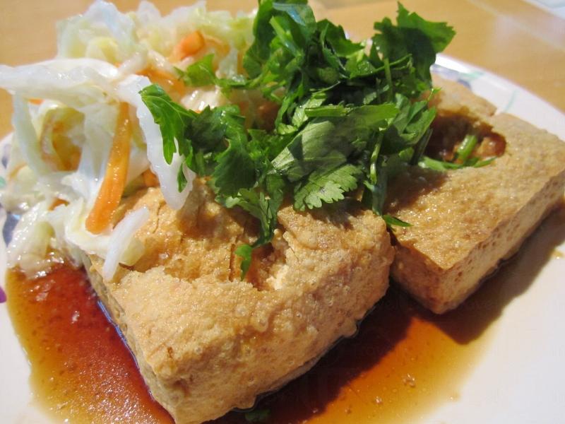 招牌小吃脆皮臭豆腐採以台灣南部的做法,先炸豆腐,然後稍微弄破豆腐中間,放入蒜汁與醬油。一口咬下,酥脆的外皮和多汁的內裡,充滿著豆香、蒜香和醬油的香氣,搭配上清爽的香菜以及台式的酸甜泡菜,想吃辣的人還可試試店家自製的特製辣椒醬,口感層次豐富。