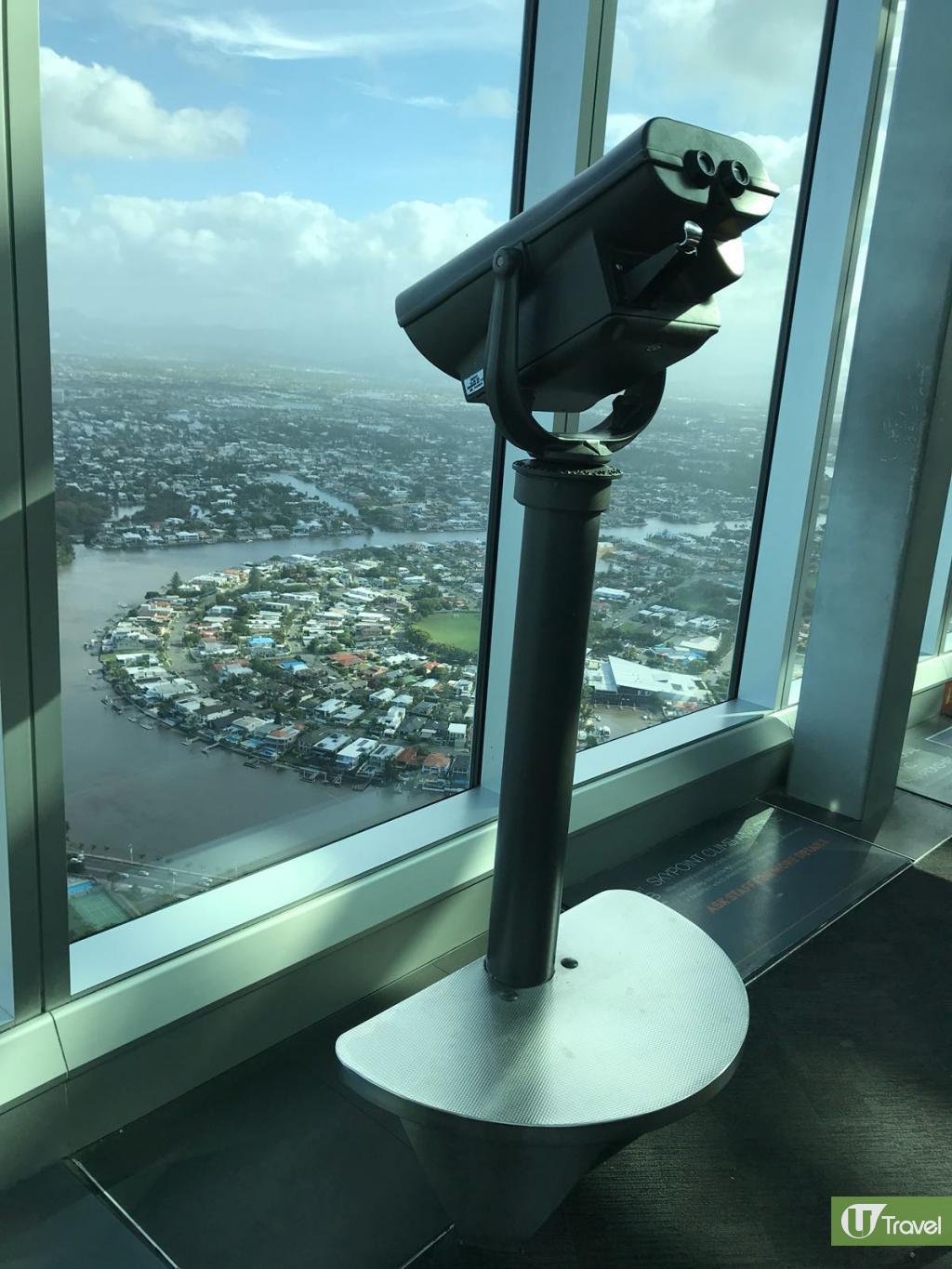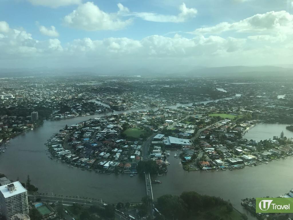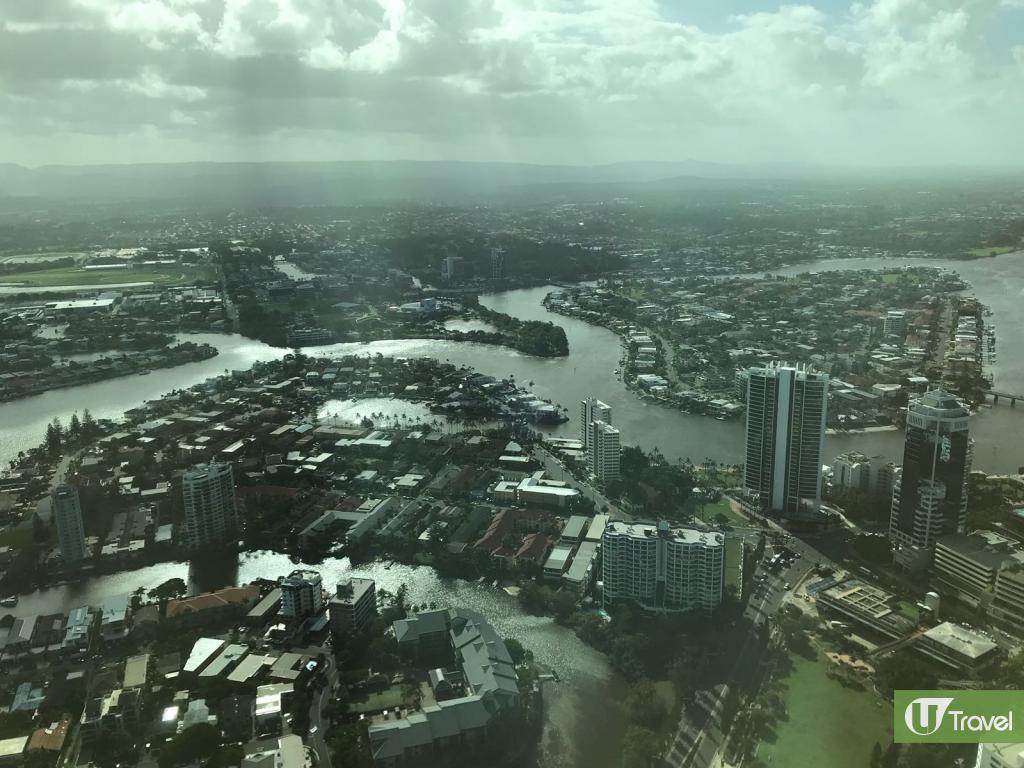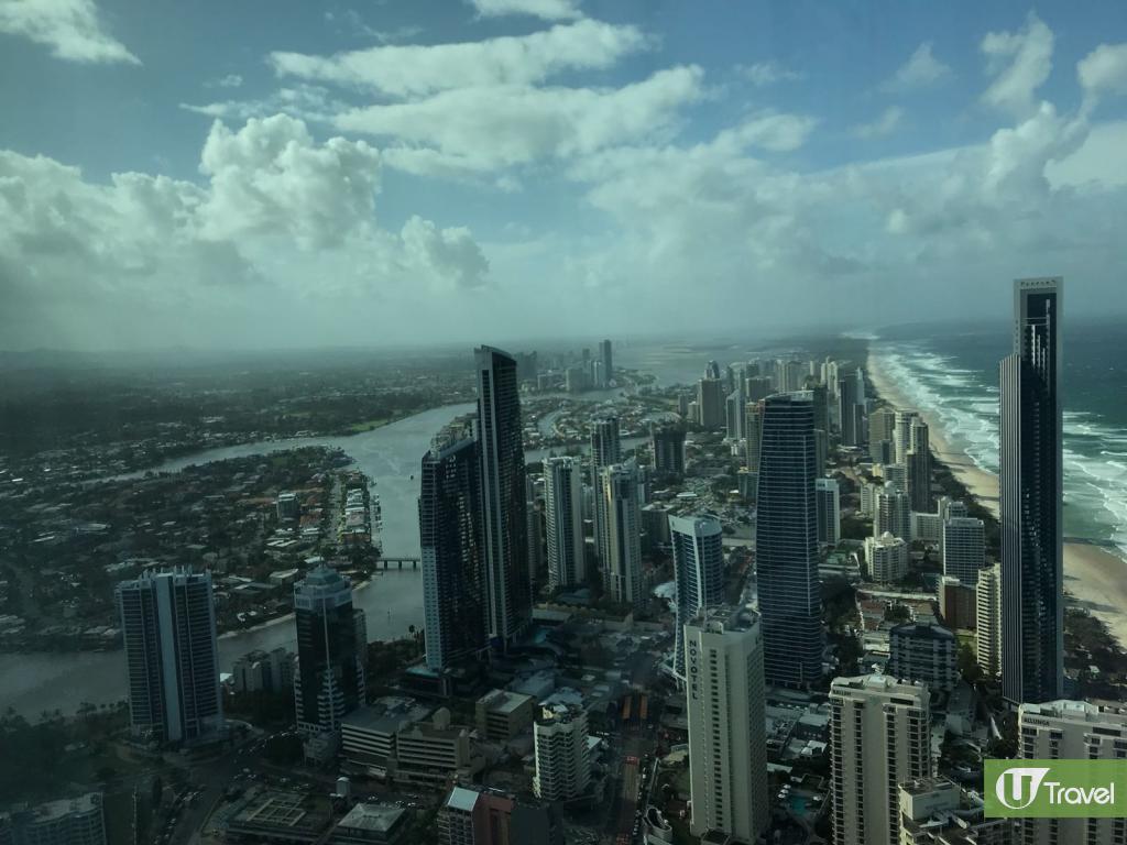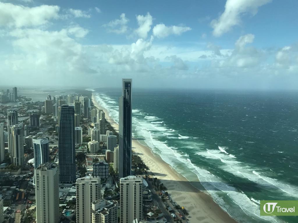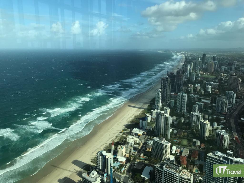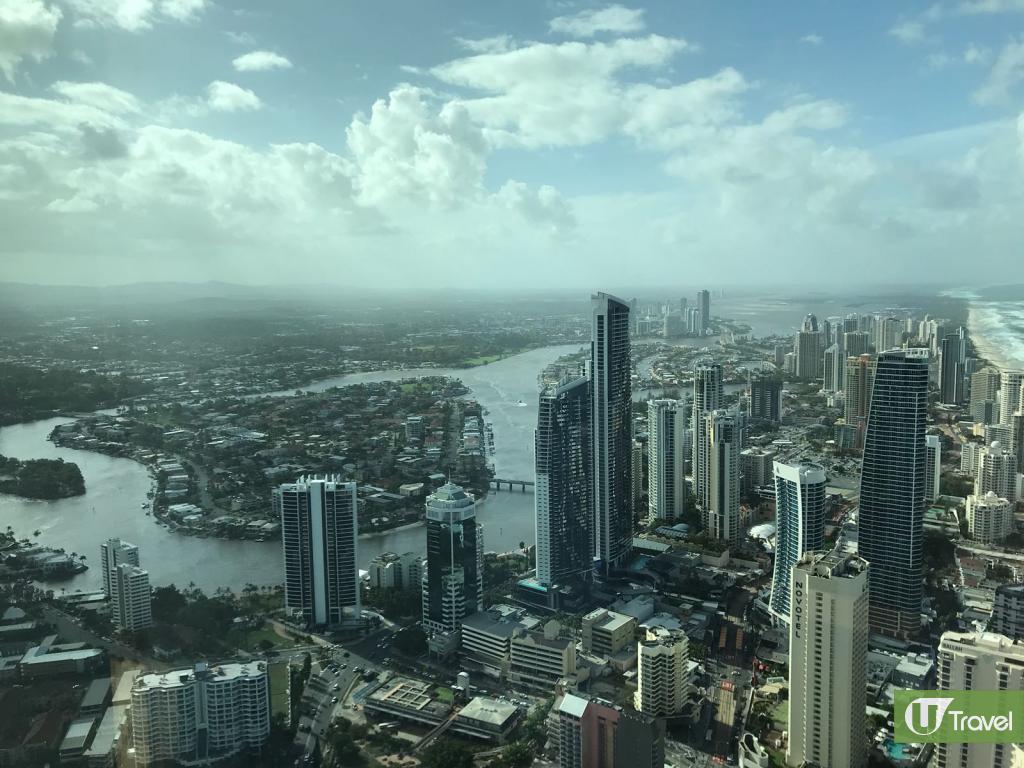 想俯瞰黃金海岸的巿容,可以登上 Q1 大廈(Q1 Building)。它是純住宅大廈,高 322 米,外觀靈感來自 2000 年悉尼奧運會的火炬,最高層 SkyPoint 則是瞭望台,遊客可以在 77 樓 360 度欣賞黃金海岸的景色。瞭望台有介紹海岸上哪個玩衝浪的點最激,也可遠眺昆士蘭省與南威爾斯省的交界點的危險角(Point Danger),是 17 世紀時英國庫克船長發現澳洲海浪很急的地方。