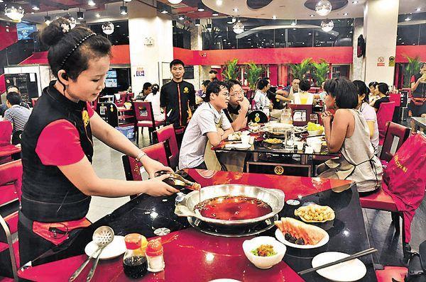 遊客坐下時,員工會開一樽紅油倒下,他們稱為「清油」,也是集團強調「打造中國清油火鍋的領袖品牌」。清油強調天然,使用植物油,不用香濃的牛油,口味自然,食用後不辣腸胃,較健康;並加了四川的二金條辣椒精華,它皮厚籽少,紅亮油潤。我撈着湯底,還有花椒和薑,口感很爽快。