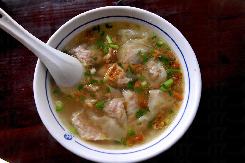 餛飩都是現場製作,師傅手法很熟練,大約3分鐘即可起鍋。餛飩用料非常新鮮,吃起來皮薄餡多,而且用上香菜末、紫菜末、芝麻、榨菜末、蒜末等配料,味道特別令人印象深刻。最特別是碗和湯匙印上老闆的肖像,食客可帶回家紀念!